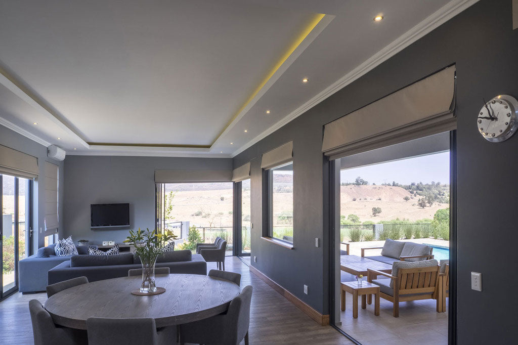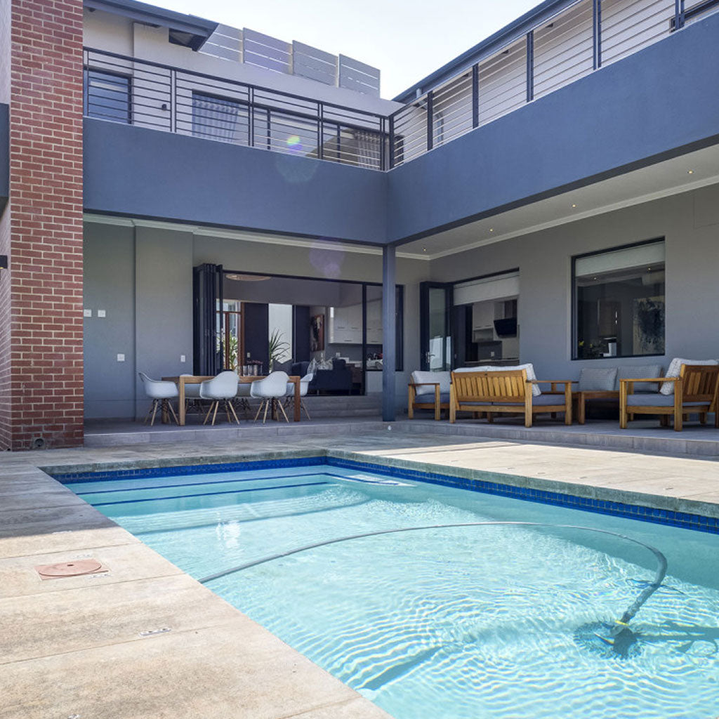 Situated in the picturesque Eye of Africa Golf Estate, this compact family home overlooks the stunning golf course, making the most of the outdoors and beautiful surroundings. As beautiful example of residential architecture it combines clean precision and symmetry with varied textures of coated walls, open flush jointed face-brick and wood to give it at once a well designed feel that is open and inviting. Lines are reminiscent of Bauhaus Architecture but are understated and true to its natural environment and purpose. The swimming pool and outside entertainment area are immediately visible from the front door and the flow of design entices one to step outside.