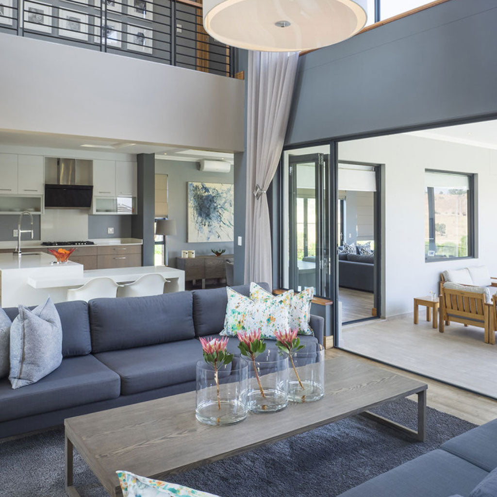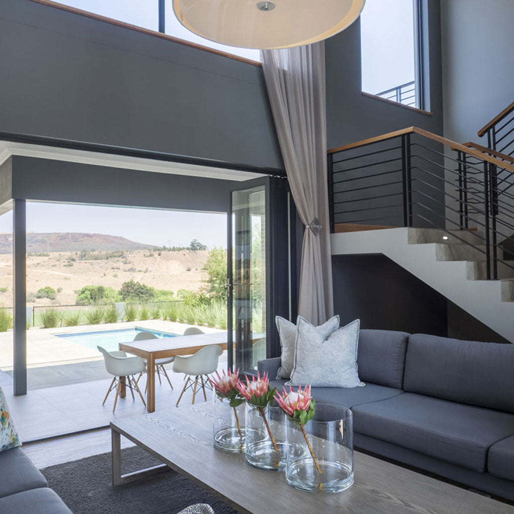 The central staircase to the upper floor frames a beautiful double volume living space that is airy and bright with high windows letting in natural light. The spacious double volume design breathes luxury and the high quality interior finishes compliments the architectural design. It is at once an easy “lock-up and go” with an exuberance in the use of space, sliding doors, windows and entertainment areas which makes it inviting and cordial – the perfect family home.